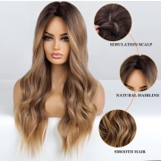 〖Product Length〗:56cm 〖 Color 〗: Brown Ombre Silver Blonde〖 Suitable Crowd〗: Adults This wig can be restyled by heating or curling, the temperature should be set below 320…