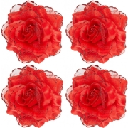 8x stuks rode roos haarbloem met glitters. Deze leuke haarclip kan gebruikt worden als haaraccessoire of kunt u klemmen op uw kleding voor een echte hawaiiaanse look. Door de klem is de roos…
