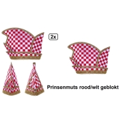 2x Prinsenmuts luxe rood/wit geblokt mt 63 goud galon. • Luxe Prins Carnaval steek in rood/wit• De steek is gemaakt van een witte satijnen stof en afgewerkt met gouden details,…