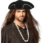 Carnaval verkleed Piraten hoed - zwart - met piraten ketting - Piraten accessiores - dames/heren -