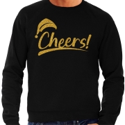 Foute Kersttrui/sweater voor heren - cheers! - zwart - glitter goud - kerstfeest XL -