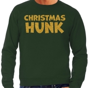 Foute Kersttrui voor heren - Christmas hunk - groen - glitter goud - Kerstfeest L -