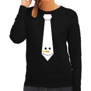 Stropdas Kerst trui/sweater sneeuwpop voor dames zwart S -