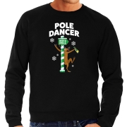 Bellatio Decorations foute humor paaldanser rendier Kersttrui sweater / outfit zwart voor heren. Op deze trui staat een rendier te paaldansen met de tekst: Pole Dancer. Perfect voor de…