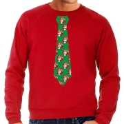 Bellatio Decorations stropdas Kersttrui sweater / outfit rood voor heren. Op deze trui staat: een kerstman met bier stropdas. Deze Kerst sweater / trui is leuke Kerstkleding om cadeau te doen of…