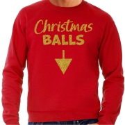 Foute Kersttrui voor heren - Christmas balls - rood - glitter goud - Kerstfeest M -