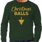 Foute Kersttrui voor heren - Christmas balls - groen - glitter goud - Kerstfeest L -