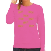 Foute kersttrui/sweater voor dames - Ho Ho Ho - roze - glitter goud S -