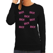 Foute kersttrui/sweater voor dames - Ho Ho Ho - zwart - glitter roze XS -