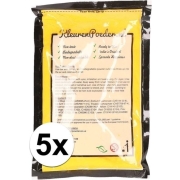 5x Holi kleurpoeder geel. Kleurenpoeder zoals ook veel op festivals en feestjes wordt gebruikt! Een zakje bevat 100 gram geel Holi poeder. Dit kleurpoeder plakt niet snel vast aan harde…