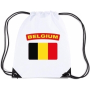 Belgie nylon rijgkoord rugzak/ sporttas wit met Belgische vlag