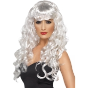 "Witte zeemeerminnenpruik voor dames - Deze witte zeemeerminnenpruik met lange gekroesde haren en pony is de perfecte aanvulling op uw themafeestoutfit…