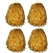 Cheerball/pompom goud - 4x - met ringgreep - 33 cm - Cheerleader verkleed accessoires -
