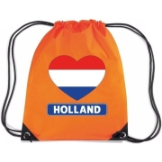 Oranje nylon rijgkoord rugzak/ sporttas Holland hart vlag