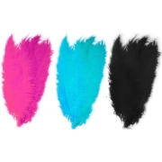 6x stuks grote veer/struisvogelveren 2x zwart 2x blauw en 2x roze van 50 cm -