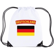 Duitsland nylon rijgkoord rugzak/ sporttas wit met Duitse vlag