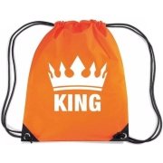 Oranje King rugzak nylon met rijgkoord, geschikt voor volwassenen en kinderen. Op dit oranje rugzakje staat groot King met een kroon. De nylon gymtas is van waterafstotende stof en heeft rijgkoord.…
