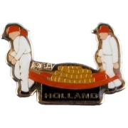 Pin Kaasdragers Holland. Metalen pin met een afbeelding van twee kaasdragers en de tekst Holland. De pin heeft een formaat van 2 x 1,5 cm. Meer typisch Hollandse souvenirs zoals klompen en kunst…