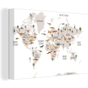 Canvas Wereldkaart - 120x80 - Wanddecoratie Wereldkaart kinderen - Dinosaurussen - Kinderkamer - Jongens - Meisjes - Kinderen