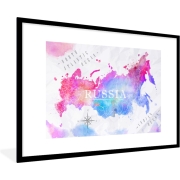 Fotolijst incl. Poster - Wereldkaart - Rusland - Waterverf - 120x80 cm - Posterlijst