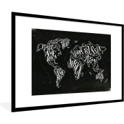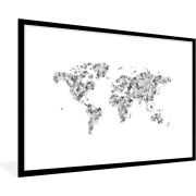 Fotolijst incl. Poster - Wereldkaart - Simpel - Zwart - Wit - 120x80 cm - Posterlijst