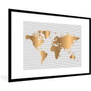 Fotolijst incl. Poster - Wereldkaart - Goud - Patroon - Kinderen - Jongens - Meisjes - 90x60 cm - Posterlijst