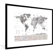 Fotolijst incl. Poster - Wereldkaart - Vlag - Zwart - Wit - 80x60 cm - Posterlijst