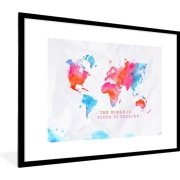 Fotolijst incl. Poster - Wereldkaart - Waterverf - Spreuk - 80x120 cm - Posterlijst