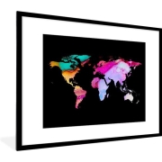 Fotolijst incl. Poster - Wereldkaart - Regenboog - Zwart - 80x60 cm - Posterlijst