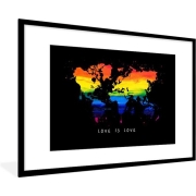 Fotolijst incl. Poster - Wereldkaart - Pride - Liefde - 90x60 cm - Posterlijst