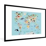 Lijst - Poster - Wereldkaart - Kinderen - Dieren - Blauw - Orka - Walvis - FotolijstDeze mooie poster past goed in de woon- of slaapkamer! Productkenmerken …