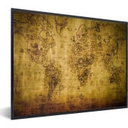 Fotolijst incl. Poster - Wereldkaart - Bruin - Vintage - 80x60 cm - Posterlijst