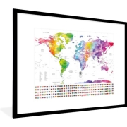 Fotolijst incl. Poster - Wereldkaart - Waterverf - Regenboog - Vlag - 80x60 cm - Posterlijst