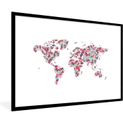 Fotolijst incl. Poster - Wereldkaart - Kleuren - Vlinders - Kinderen - Jongens - Meisjes - 120x80 cm - Posterlijst