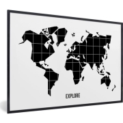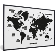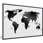 Fotolijst incl. Poster - Wereldkaart - Trendy - Zwart - 90x60 cm - Posterlijst