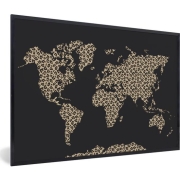 Fotolijst incl. Poster - Wereldkaart - Dierenprint - Luipaard - 90x60 cm - Posterlijst