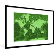 Fotolijst incl. Poster - Wereldkaart - Stoer - Groen - 120x80 cm - Posterlijst