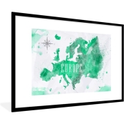 Fotolijst incl. Poster - Wereldkaart - Europa - Verf - 120x80 cm - Posterlijst