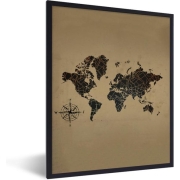 Fotolijst incl. Poster - Wereldkaart - Vintage - Kompas - 60x80 cm - Posterlijst