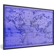 Fotolijst incl. Poster - Wereldkaart - Vintage - Paars - 90x60 cm - Posterlijst