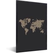 Fotolijst incl. Poster - Wereldkaart - Trendy - Zwart - 90x60 cm - Posterlijst