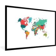 Fotolijst incl. Poster - Wereldkaart - Kleurrijk - Simpel - 90x60 cm - Posterlijst