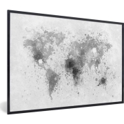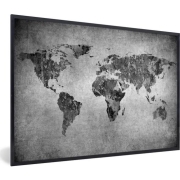 Fotolijst incl. Poster - Wereldkaart - Zwart - Wit - 80x60 cm - Posterlijst