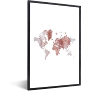 Fotolijst incl. Poster - Wereldkaart - Aquarelverf - Roze - 60x80 cm - Posterlijst