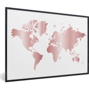 Poster in lijst kids - Schilderij voor meisjes - Muurdecoratie kinderkamer - Wereldkaart - Roze - Kinderen - Jongens - Meisjes - 90x60 cm