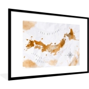 Fotolijst incl. Poster - Wereldkaarten - Japan - Waterverf - 120x80 cm - Posterlijst