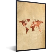 Fotolijst incl. Poster - Wereldkaart - Abstract - Bruin - 80x60 cm - Posterlijst
