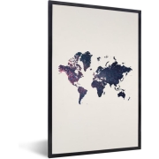 Fotolijst incl. Poster - Wereldkaart - Glitter - Blauw - Roze - 60x90 cm - Posterlijst