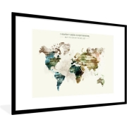 Fotolijst incl. Poster - Wereldkaart - Vintage - Quotes - 60x80 cm - Posterlijst
