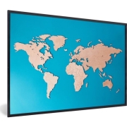Fotolijst incl. Poster - Wereldkaart - Houtkleur - Blauw - 90x60 cm - Posterlijst